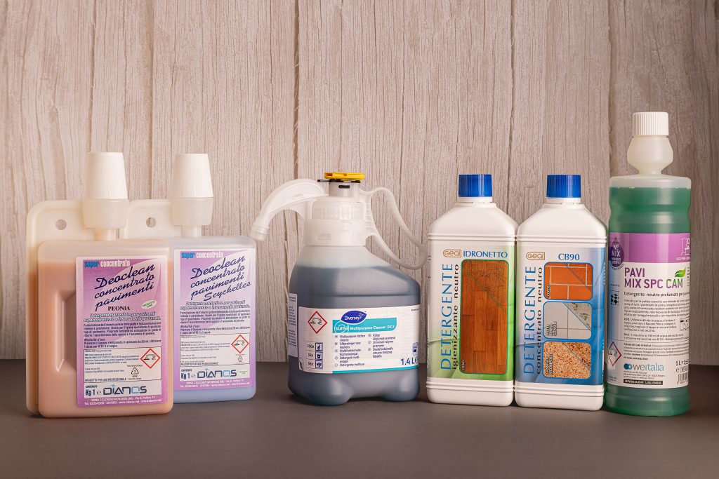Detergenti professionali concentrati forniti dei relativi sistemi di dosaggio o con tappo dosatore, formulati per offrire elevate prestazioni di pulizia con un utilizzo ottimizzato del prodotto