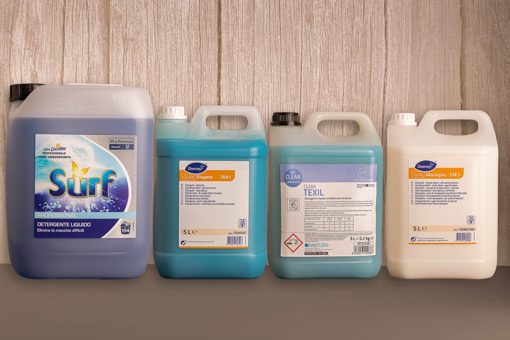 Detergenti liquidi con formulazioni specifiche e professionali, per il lavaggio manuale dei tessuti, efficaci contro lo sporco, delicati sulle fibre.