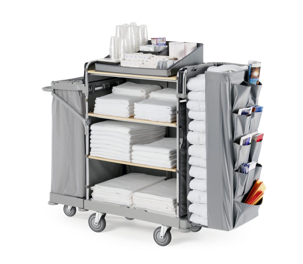 Carrelli di servizio progettati per ogni area della struttura. Carrelli porta valigie, carrelli biancheria per i piani e carrelli per sala e ristorazione. Robusti e maneggevoli, conformi alle normative e progettati per uso professionale, sono disponibili in varie dimensioni e configurazioni per ottimizzare i flussi operativi