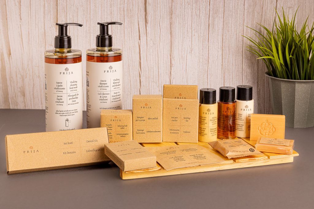 La linea cortesia Prija è pensata per offrire agli ospiti un’esperienza di benessere completa e distintiva, combinando qualità cosmetica, attenzione ai dettagli e identità sensoriale. I prodotti Prija per l’igiene personale sono formulati con ingredienti naturali selezionati come ginseng, loto ed estratti vegetali, noti per le loro proprietà tonificanti e rigeneranti. Le formulazioni sono delicate e ipoallergeniche, adatte a tutti i tipi di pelle, e caratterizzate da una fragranza calda ed esotica. Il packaging elegante e funzionale è disponibile in diversi formati. L’attenzione alla sostenibilità, con materiali riciclabili e formule certificate Vegan Friendly, rende la linea Prija una scelta ideale per strutture ricettive che desiderano unire comfort, immagine e responsabilità ambientale
